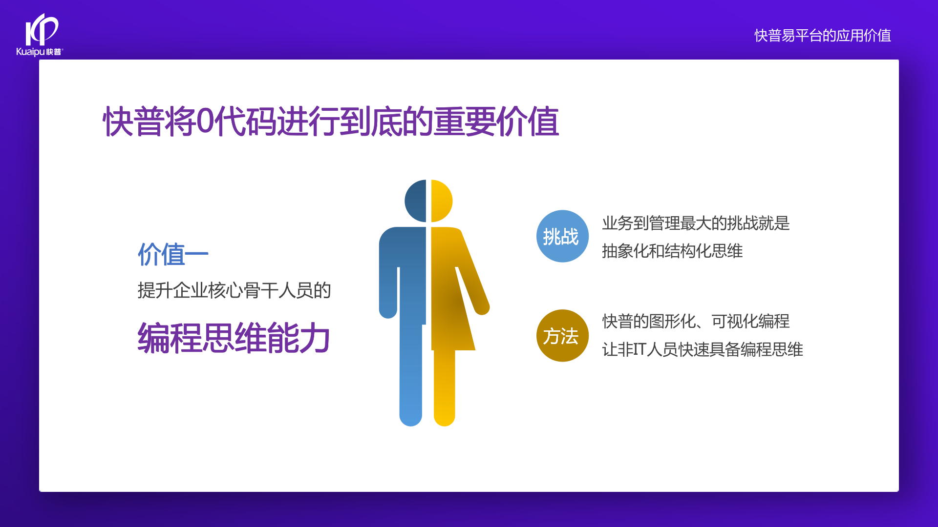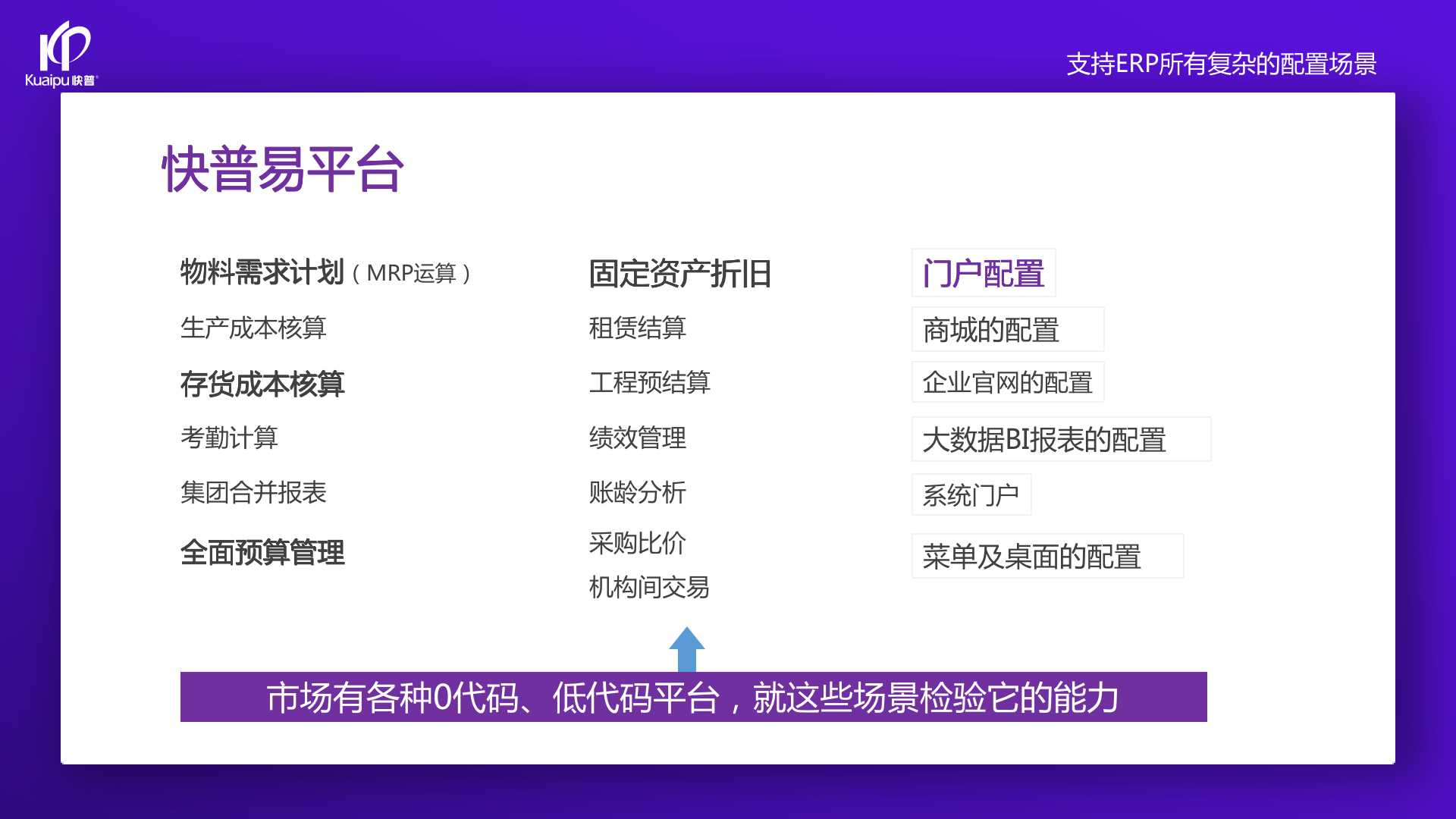 過(guò)去企業(yè)用的ERP系統(tǒng),都不能完全理解、看透它的邏輯。因?yàn)椴涣私膺壿?,就看不透,就用不好系統(tǒng)。快普經(jīng)歷了大量的客戶,發(fā)現(xiàn)如果用戶理解系統(tǒng)邏輯,會(huì)用得更好,提的需求也更合理、更結(jié)構(gòu)化。但過(guò)去確實(shí)沒(méi)辦法讓所有普通用戶看懂源代碼。