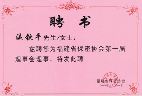 9月21日,全國首家省級保密協(xié)會——福建省保密協(xié)會第一屆第一次會員大會在福州隆重舉行。作為客戶保密工作取得顯著成效的典范企業(yè),我司總經(jīng)理溫欽平應(yīng)邀參加了此次會議,并受聘成為福建省保密協(xié)會理事成員,同時公司也受聘為省保密協(xié)會理事單位。