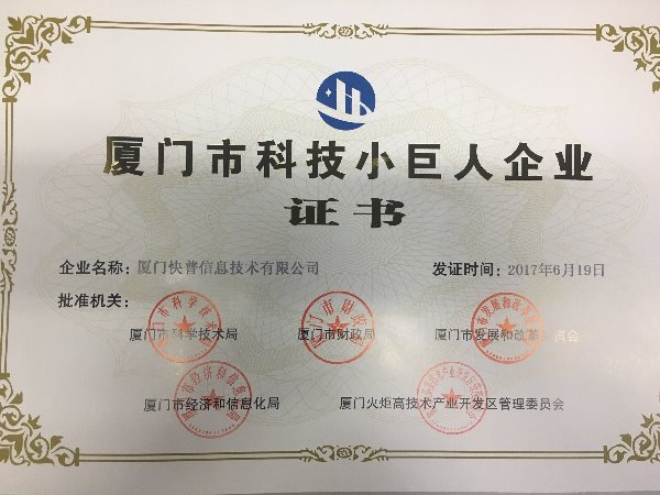 近日,福建省科技廳公布2017年科技小巨人企業(yè)名單,廈門快普信息技術(shù)有限公司憑借自身的卓越實力,在激烈競爭中脫穎而出,被授予2017年“廈門市科技小巨人企業(yè)“榮譽稱號。