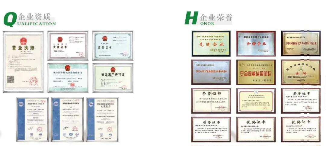 福建省春天生態(tài)科技股份有限公司先后獲得國家授予的“國家高新技術企業(yè)”、“中國風景園林學會優(yōu)秀園林工程大金獎”、“福建省守合同、重信用單位”、“福建省城鄉(xiāng)建設系統(tǒng)和諧企業(yè)”等榮譽稱號。