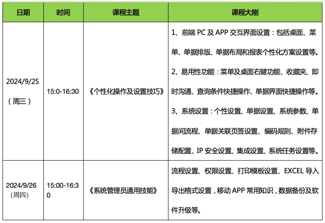 本次培訓(xùn)采取分級式、系統(tǒng)化的系列培訓(xùn),包括基礎(chǔ)夯實(shí)、中級進(jìn)階、高級深化及專題應(yīng)用四大板塊分別進(jìn)行,旨在全方位提升系統(tǒng)管理員及關(guān)鍵崗位人員的專業(yè)技能。從基礎(chǔ)操作到高級維護(hù),從日常應(yīng)用到深度挖掘。除了精彩的課程內(nèi)容外,我們還為參與培訓(xùn)學(xué)員提供持續(xù)的重點(diǎn)支持,包括匯總問題預(yù)約遠(yuǎn)程會議一對一輔導(dǎo),解決疑難雜癥,確保培訓(xùn)成果落地。